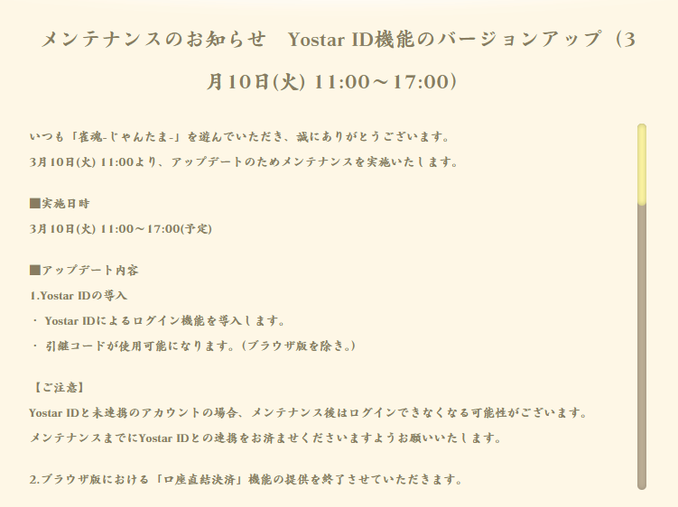 | <支払い方法> 2019年6月5日現在、 「クレジットカード」「Paypal」「ドコモ払い」「ソフトバンクまとめて払い」 のみである。 →6/13より「auかんたん決済」が追加(公式ツイッターより) →9/19より「webmoney」が追加(公式ツイッターより) →22/9/28より「PayPay」が追加(公式アプデ情報より) →23/8/24より「口座直結決済」が追加(公式アプデ情報より) →26/3/10より「口座直結決済」が停止予定(公式アプデ情報より。→決済機能の終了告知) 2019年10月1日より、消費税8→10%に伴う輝石・開運御守りの値上げあり。画像ミラー (消費税8%と10%時の旧価格・単価・契約ポイント効率の表はこちら) 2022年10月5日より、AppStoreの価格規約の改定に伴う価格調整あり。画像ミラー (旧価格との差をまとめてくれている人がいました) デビットカードも使用可能。クレジットカードを選択して番号を入力すればよい。 |