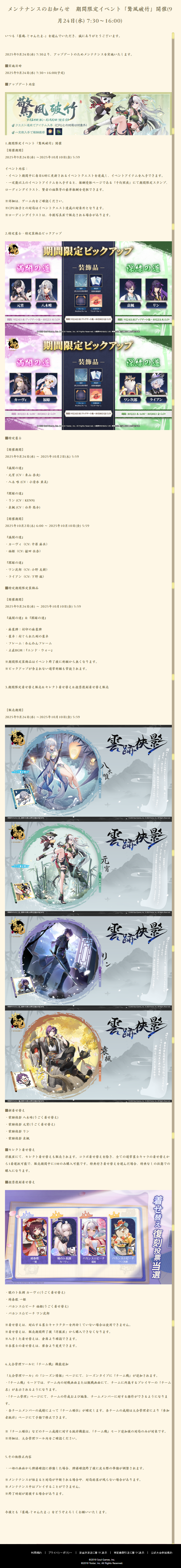 ピックアップガチャ実装時は、ピックアップ分が別ガチャとして独立。 女性新キャラは満開の道、男性新キャラは新緑の道、コラボは異界の風という名称になる。 なお、コラボが男性キャラだった時には需要に配慮してか、 「異界の桜風(コラボキャラ+女性)」「異界の竹風(コラボキャラ+男性)」の二つが用意された。 また、新キャラと同時に衣装実装の場合は、衣装に関わる過去キャラピックアップは 2021水着は女性キャラは仲夏魅影、男性キャラは仲夏華光という名称で実装された。 |